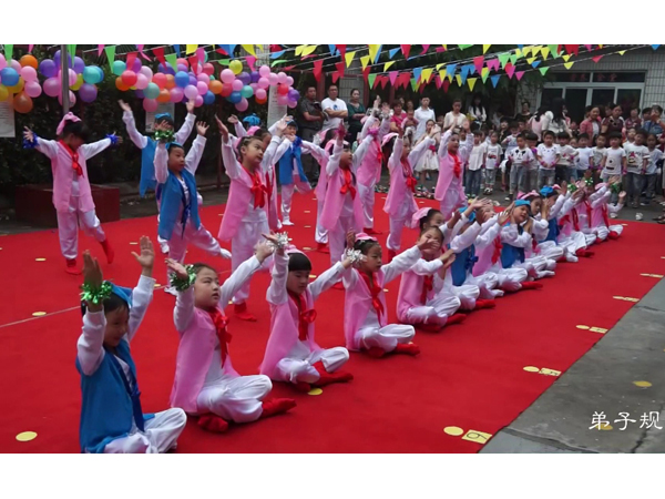 一禾學校學生校園內誦讀 弟 子 規